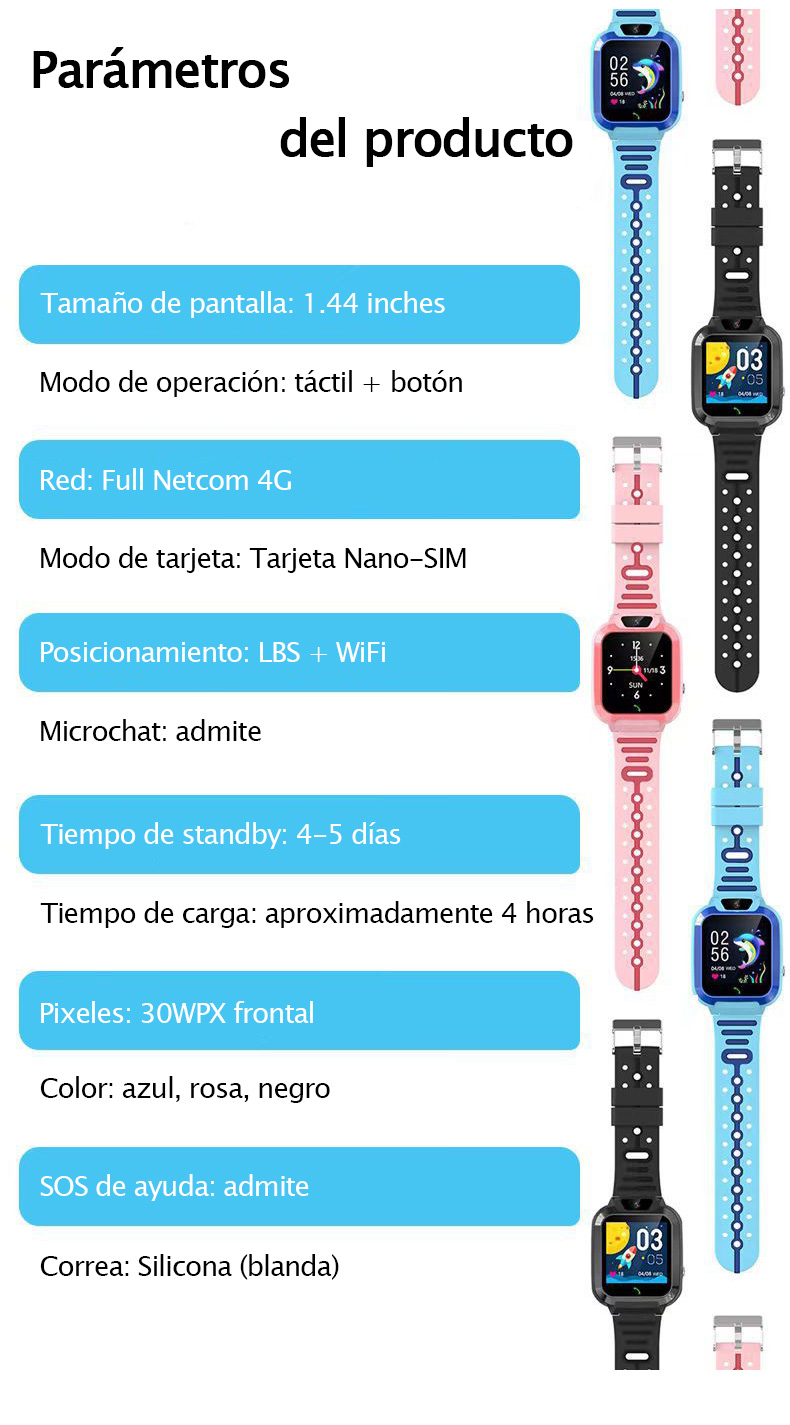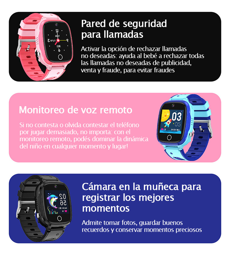 Diseñado pensando en lo más importante: ​​la seguridad de tu hijo​​. Con tecnología 4G de última generación, este reloj inteligente es tu mejor aliado para mantenerte conectado con tu pequeño en todo momento y lugar.